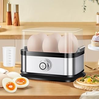 €6,99Produkt kaufenEierkocher 6 Eier, Eierkocher Edelstahl, 200 W, One-Touch-Start, Warmhaltefunktion, BPA-frei, leicht zu reinigen mit PTC-Temperaturregelung, Anti-Trockenbrennen, Messbecher inklusive