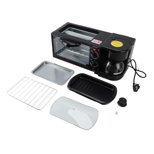 3-in-1-Frühstücksstation, Vielseitiger Frühstückszubereiter, Inklusive Kaffeemaschine, Antihaftbeschichteter Grillplatte, 12-Liter-Toaster, Leicht zu Entfernen und zu Reinigen