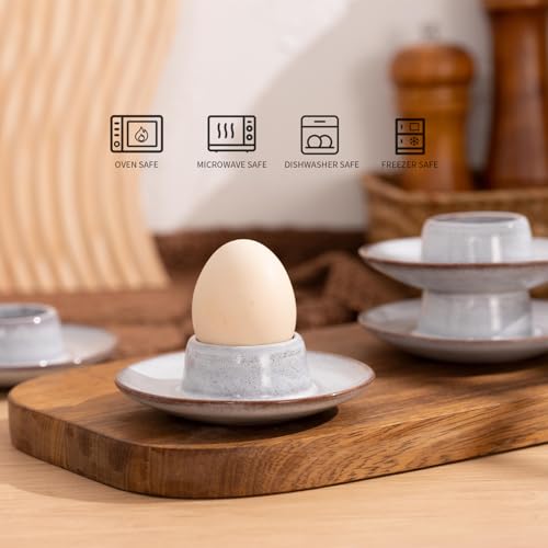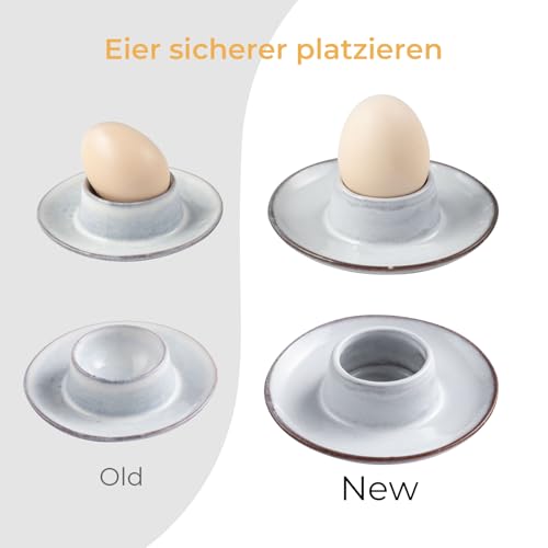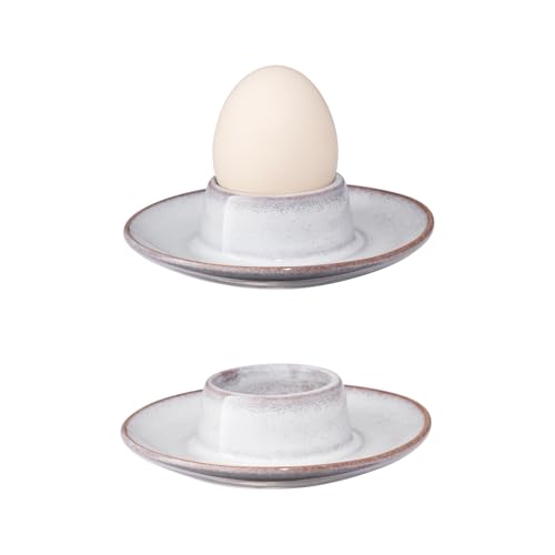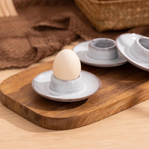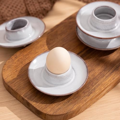Bluweet Eierbecher 2 Stück aus Porzellan Eierhalter, Stapelbar, 4er-Set mit runden Ecken Graue Reduzierende Glasur