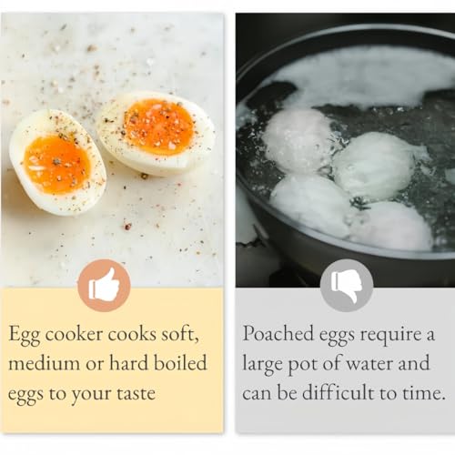 Schnelles und effizientes Kochen: Der gekochte Eierkocher kocht bis zu 4 Eier gleichzeitig in zwar Minuten, egal ob Sie weiche, mittlere oder hart gekochte Eier bevorzugen, gesamt für eine schnelle und nahrhafte Mahlzeit.
