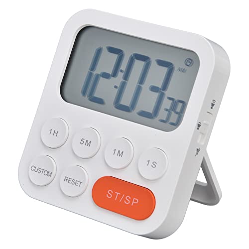 Digitaler Küchentimer, Eieruhr Kurzzeitmesser mit Uhr Stoppuhr Wecker Funktionen, Großes Display und Taste, 3 stufiger Lautstärke, tragbare, aufstellbare Timer mit Magnet für Schlafzimmer