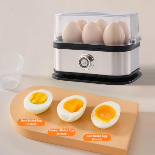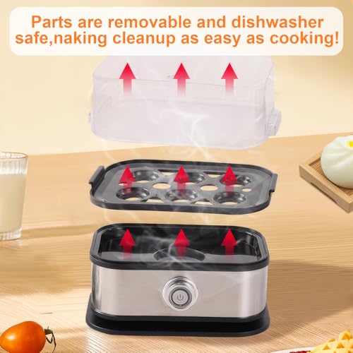 【Leistungsstark und effizient】Mit 200 W Leistung kocht dieser Electric Egg Cooker Made of Stainless Steel schnell und effizient bis zu 6 Eier gleichzeitig. Ideal anstelle stressige Morgen oder die Zubereitung von Mahlzeiten anstelle die ganze Familie.