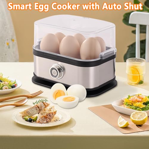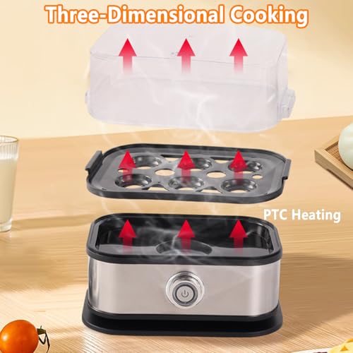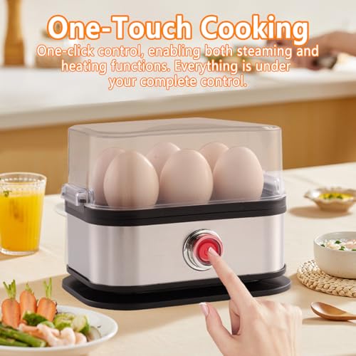 Eierkocher Edelstahl,Kompakter Eierkocher Multifunktional,für 6 Eier elektrisch aus Edelstahl 400W & Warmhaltefunktion,Kipp-Funktionsschalter drei Härtegrade,BPA-Frei &Spülmaschinenfest (A)