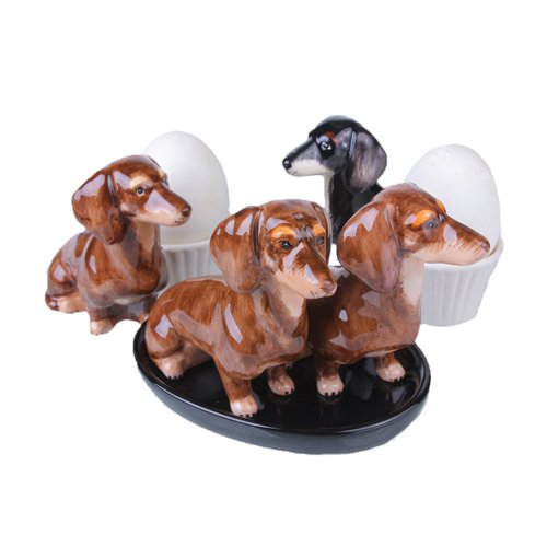 Eierbecher set Eierbecher keramik Dackel braun und schwarz 2 er SET