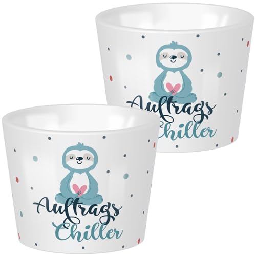 GRUSS & CO Eierbecher mit Motiv „Auftragschiller“ | Porzellan, Höhe 4,3 cm, Durchmesser 5,2 cm | lustiges Geschenk, Frühstück, Ostern | 48527