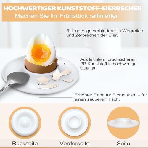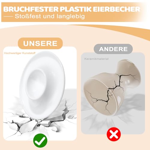 🛡️ Bruchsicher & langlebig – Hergestellt alle robustem PP-Kunststoff. Die Eierbecher sind leicht, bruchsicher und verschleißfest – ideal für Kinder, den Tagesgeschäft und den Outdoor-Einsatz. Das Material ist leicht zu reinigen und bleibt vulgo bei häufiger Nutzung glänzend.