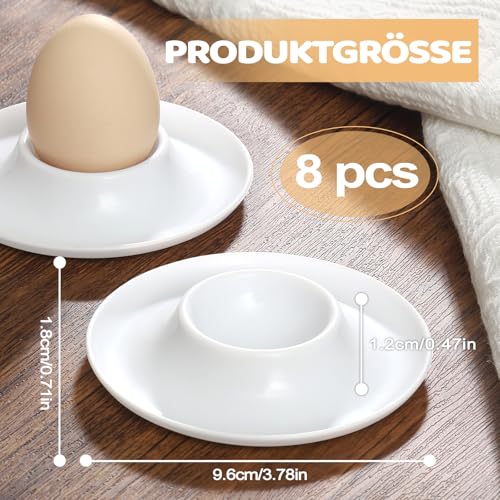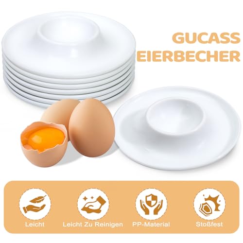 📦 Lieferumfang – Im Set enthalten sind 8 weiße, runde Eierbecher der Marke Gucass. Aus Becher misst ca. 9,6 × 1,8 cm und eignet sich für Eier in Standardgröße.