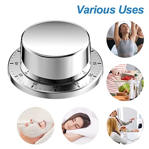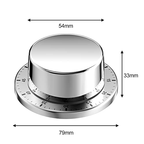 Gvolatee Mechanischer Küchentimer, Adsorbierbarer Magnetischer Timer, Wiederverwendbarer Wasserdichter Edelstahl-Timer, Tierender Countdown-Timer für Backen,Kochen, gekochte Eier in der Küche Silber-