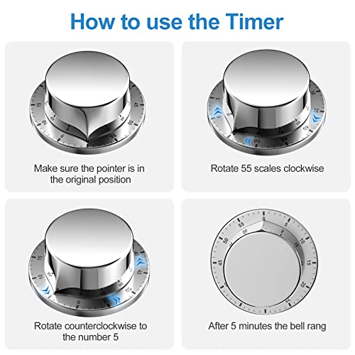 【Mechanische Küchentimer】: Hergestellt aus hochwertigem Edelstahl und Antiblockiersystem-Materialien. Der mechanische Innenkern wird von Hand aufgezogen, benötigt keine Batterien, ist wasserunempfindlich, lange wiederverwendbar, umweltfreundlich und erschwinglich.