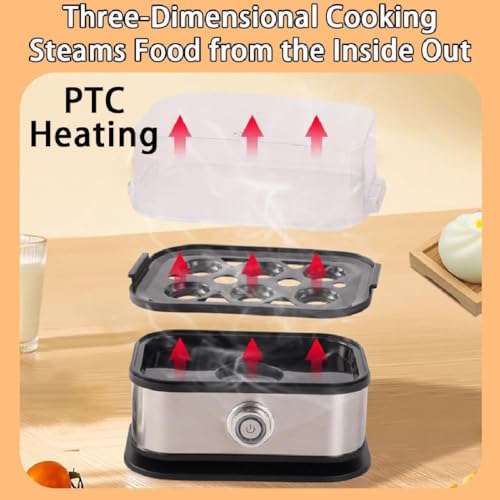 Großes Fassungsvermögen — Dieser kompakte, tragbare Eierkocher kann bis zu 6 Eier überraschend kochen, perfekt für die Zubereitung eines Frühstücks für die ganze Familie, ideal für geschäftige Vormittage oder gemütliche Brunches!