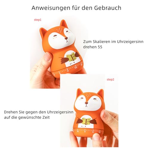 Herifam Eieruhr Kinder Mechanischer Küchentimer Lustig Waldtiere Kurzzeitwecker 60 Minuten Countdown Timer Zeitmanagement Werkzeug (A)