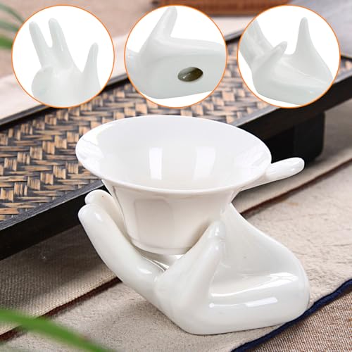 JJQHYC Keramik Eierbecher 4er Set Lustige Hand-Eierhalter Küche Aufbewahrung Ständer für gekochte Eier Ostergeschenk Weiß