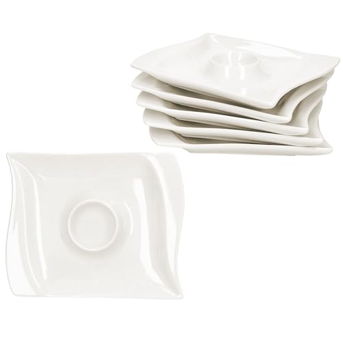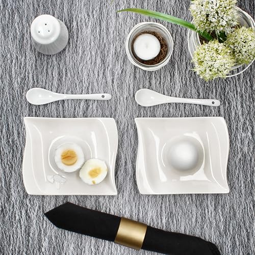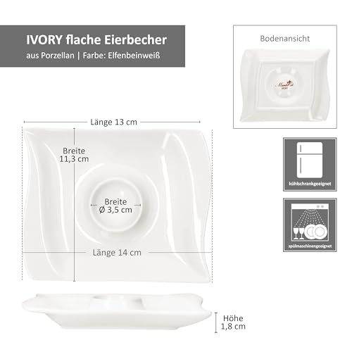 MamboCat 6er Set elegante flache Eierbecher Ivory mit Ablagekasten | rechteckige formschöne Eierbecher mit modernem & geschwungenem Design