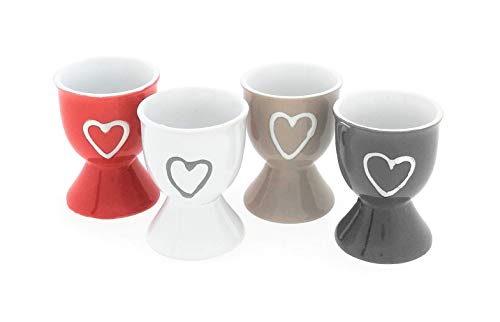 MC Trend 4er Set Eierbecher Herz Dekor Frühstück Ei Behälter Breakfast Egg Cup aus Keramik