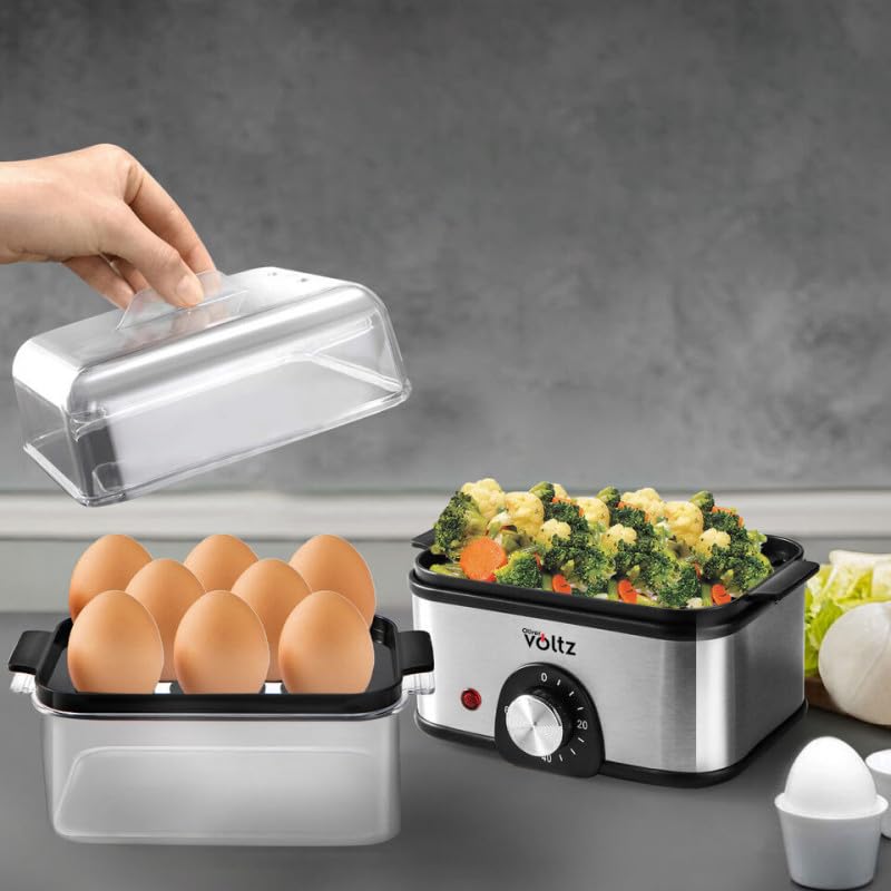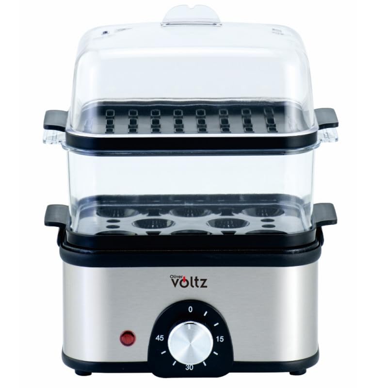 Oliver Voltz Eierkocher weiterhin Dampfgarer, 400W, 8 Eier, Timer, Überhitzungsschutz, Schwarz/Edelstahl