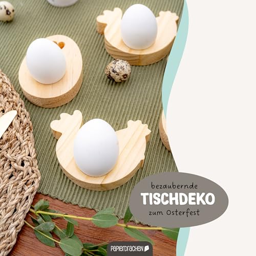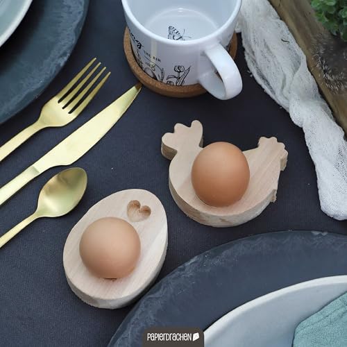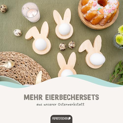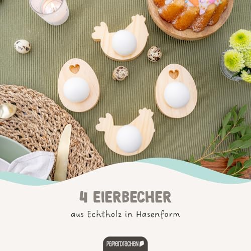 Papierdrachen 4 Eierbecher aus Holz – Hochwertige Oster Dekoration – perfekt für Brunch und Frühstück – Tischdekoration zu Ostern – Küken Ei Motiv – Set 1