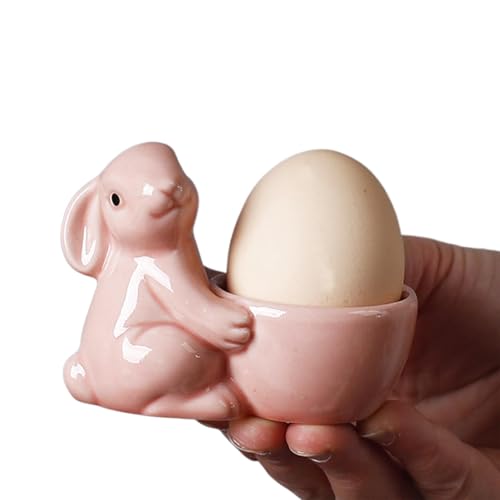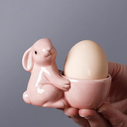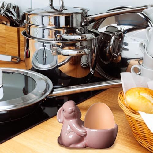 Porzellan-Eierbecher, Eierbecher für weichgekochte Eier,Eierbecher mit Hasenstatue aus Keramik – Niedliche und einfache Osterhasen-Eierständer-Dekoration, für gekochtes Ei