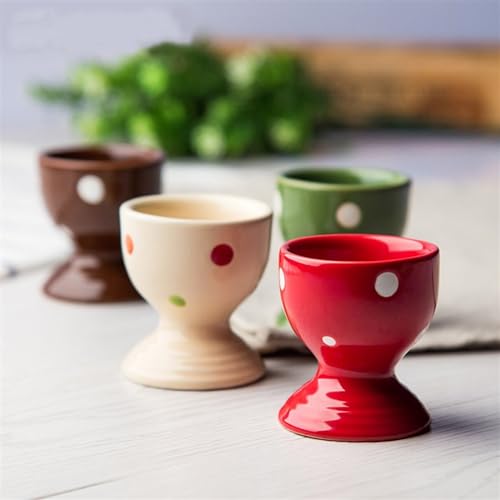 QTANZIQI Eierbecher aus Porzellan mit braunem und weißem Punktmuster – eleganter Eierhalter Silk Pillowcase