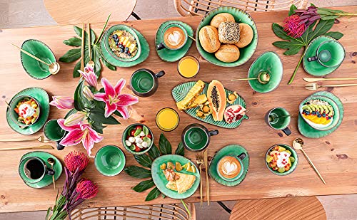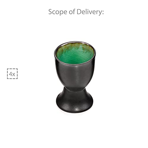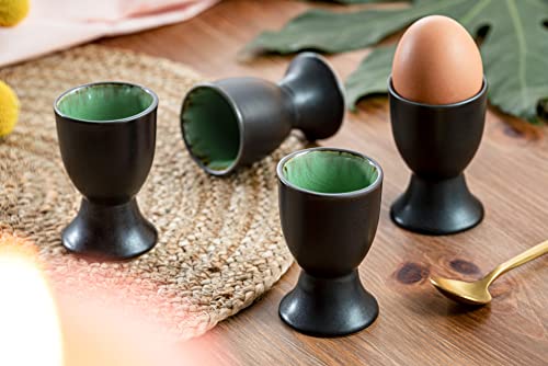 EINZIGARTIGES DESIGN: Die unregelmäßige Formgebung, das dunkle Design mit grüner Innenfläche und die feinen Unebenheiten realisieren die Eierbecher zu echten Hinguckern auf dem Frühstückstisch