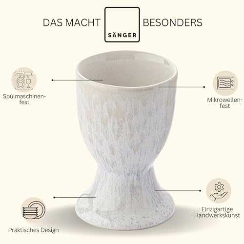 SÄNGER | Eierbecher Set Korfu 4 tlg. Steingut Eierbecher für 4 Personen, Handgemacht, Cremefarben mit sandiger Maserung | PREMIUM COLLECTION
