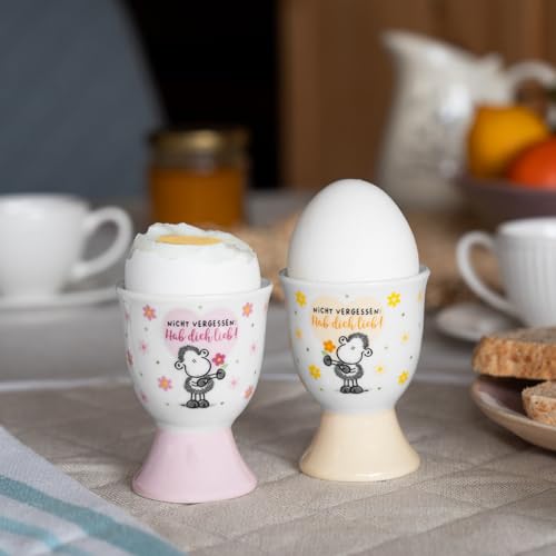 Sheepworld Eierbecher-Set Motiv „Lieb“ | Geschirrset bestehend aus 2 Eierbechern, Porzellan, Höhe 6,8 cm, in Geschenk-Banderole | Geschenk Ostern, Osternest, Osterdeko | 73823