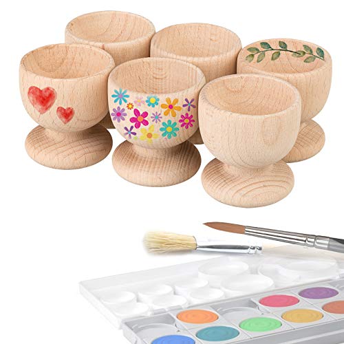 Lieferumfang: 6 Bereich hölzerne Eierbecher. Jeder Becher hat die Abmessungen 5 x 5 x 5 cm und ist perfekt für alle Arten von Eiern nach Maß. Dieses Set ist ideal für Familien und bietet eine stilvolle und praktische Beilage für den Frühstückstisch