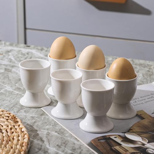 SumitlEyao 6 Stück Keramik-Eierbecher, Porzellan-Eierständerhalter, für Party, Tischdekoration, Zuhause, Frühstück, Kochen, mikrowellengeeignet, Weiß