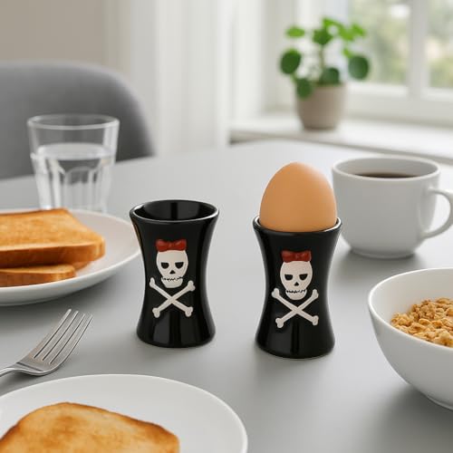 Totenkopf Eierbecher 2er Set – Schwarz/Weiß | Gothic Skull Deko für Frühstück & Küche | Eierhalter aus Keramik – Geschenkidee