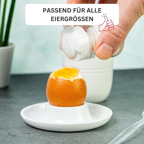 Formschönes Eierbecher-Set aus 6 runden Bechern in zeitloser, schlichter Form für das perfekte Frühstücksei, für normalgroße Hühner-Eier geeignet