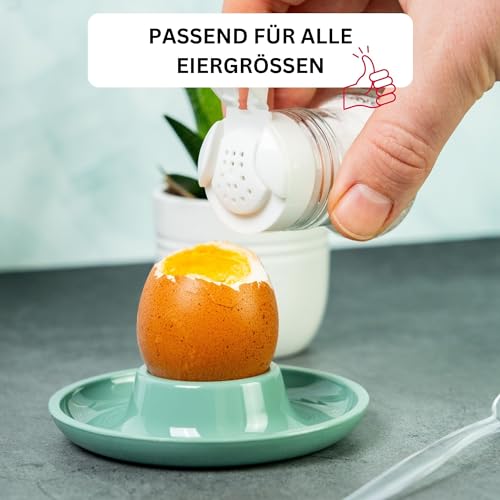 Formschönes Eierbecher-Set aus 6 runden Bechern in zeitloser, schlichter Form für das perfekte Frühstücksei, für normalgroße Hühner-Eier geeignet