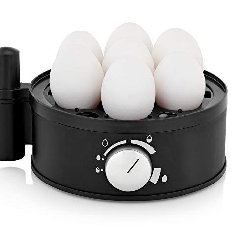 Der Eierkocher, mittels herausnehmbarem Eierhalter, ermöglicht ein energiesparendes Am Herd stehen von 1-7 Eier. Die Kochzeit wird durch die Zeituhr geregelt, so ist kein Erheben der Wassermenge notwendig