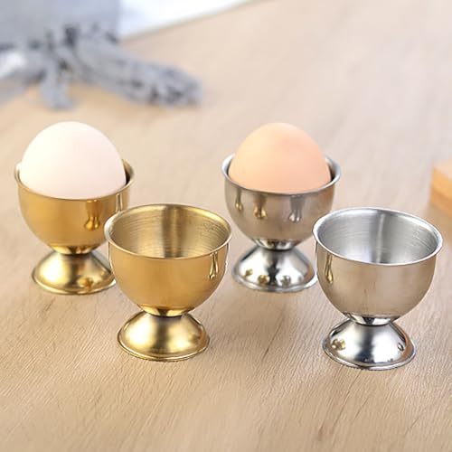 Yitobici Eierbecher aus Edelstahlmit, rund,Fuß, stapelbar, 6er Set Eierhalter Tablett,Silber(Gold,4Stück)
