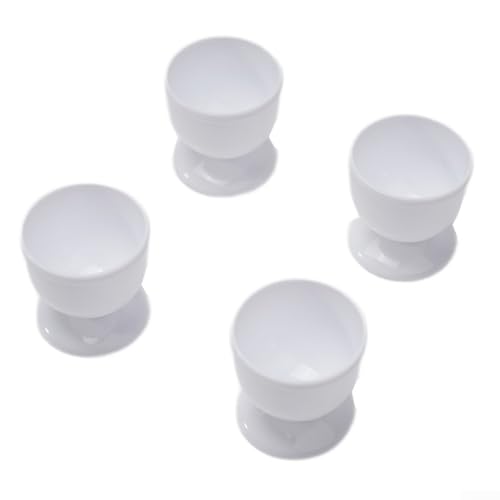 Yuanpgky Set mit 4 oder 8 weißen Kunststoff-Eierbechern für hart oder weich gekochte Eier, Frühstücksgeschirrhalter für Küche, Esszimmer, Servieren (4 Stück)