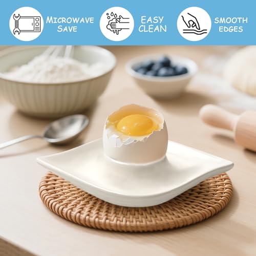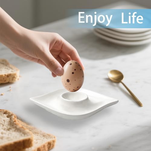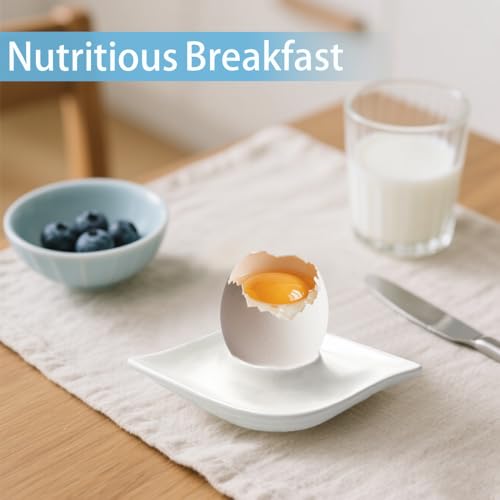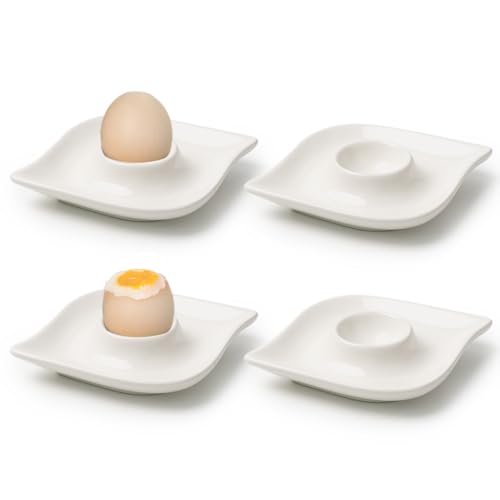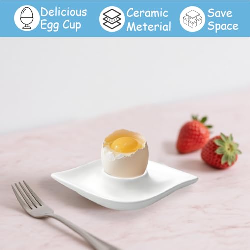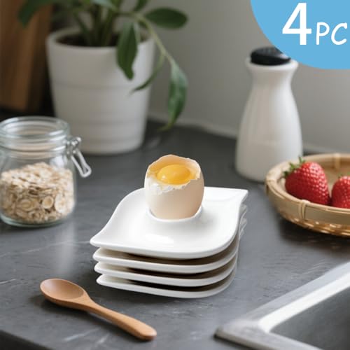 Zaposcca Keramik-Eierbecher-Set mit 4 weißen Porzellanhalter für das tägliche Frühstück, gekochte Eier, glatte Kanten, kratzfest, einfach zu pflegen Kindheitsmahlzeiten, Zuhause, Küche